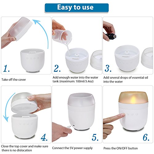 3.Whisper-Quiet & Noise Free:The diffuser is extremely quiet with very little operating noise, the sounds are below 25 db in operation. You can sleep better. A deep sleep allowed suppressed anxieties to surface.