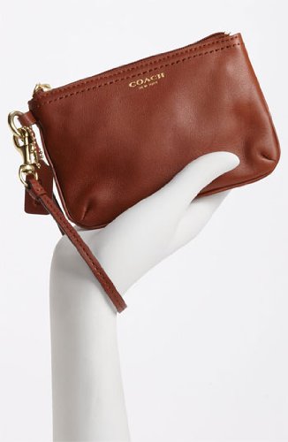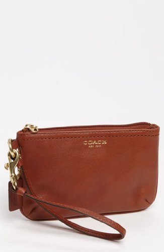-. Title : Coach Legacy Leather Small Wristlet Brass/Cognac