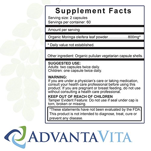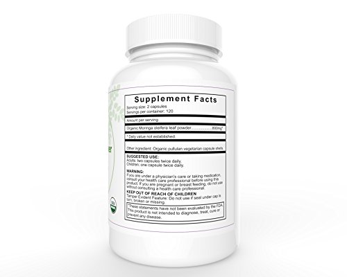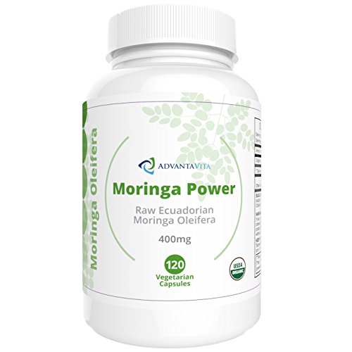 Premium Organic Moringa Oleifera 100% Pure USDA Certified - Raw Ecuadorian Leaf Powder Capsules 400 Mgs (120 Veg caps) Made In USA - GMO Free - 30...