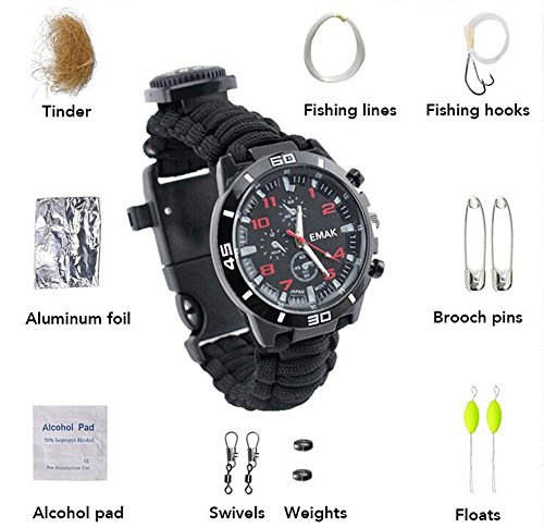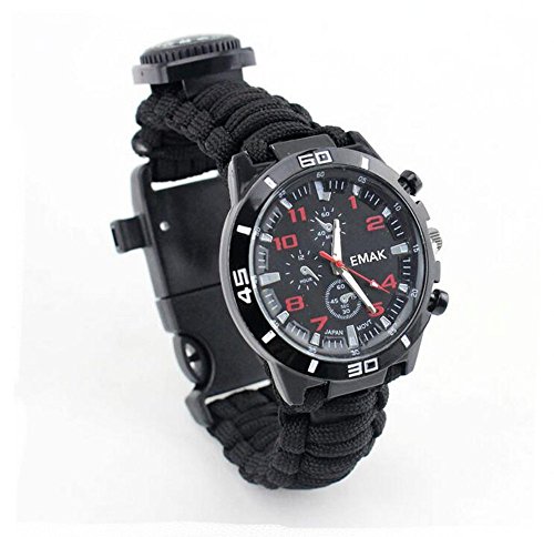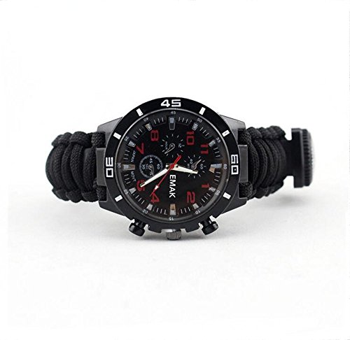 Survival Bracelet Watch,Guardians Paracord Multifunctional Outdoor Survival Kits with 12 tools including Paracord Rope, Compass, Whistle, Rope Cutter, Fire Starter Scraper, Flint