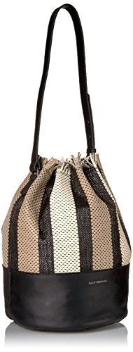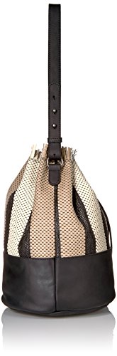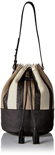 Studio : Lucky Publisher : Lucky Binding : Apparel Product Description Take your style up a notch with this all over leather woven bucket bag. Keep all of your essentials organized with 1 interior zip pocket and two media pockets. Exterior features include drawstring pull with tassel detail, adjustable strap and frayed top line. 0