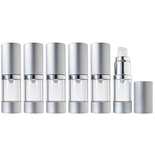 Airless Pump Bottle Refillable Travel Container - 10 ml / 0.34 oz (6 Pack)