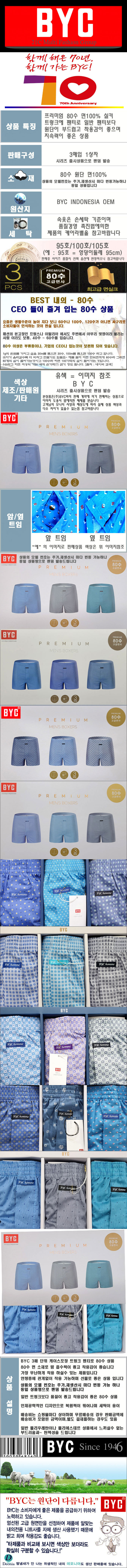 BYC 트렁크팬티중 실키 면실크 3매입으로 출시된 면100% 80수 트렁크 상품 입니다