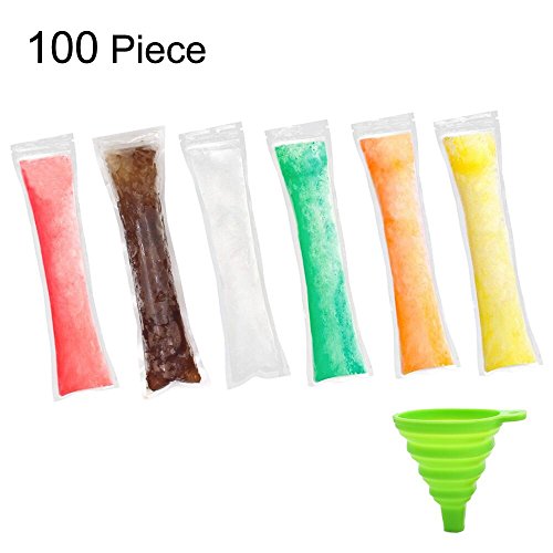 Zicome 100 Pack Disposable Ice Popsicle Bags for Kids Gogurt, Ice Candy, Freeze Pops, Ziplock Design, Collapsible Funnel Included