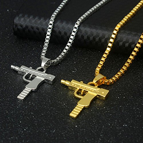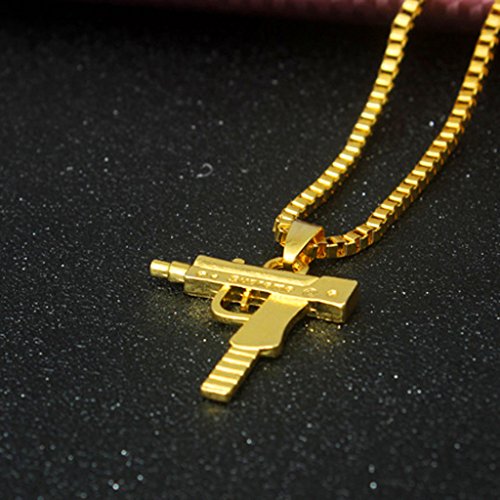 -. Binding : Jewelry -. Brand : Pink-day -. Department : mens -. Feature : Material: Alloy / Necklace length: app.50cm/19.69'' / Gun size: app.3cmx2.7cm/1.18''x1.06'' / Quantity: 1 Pc (Necklace only, other accessories demo in the picture is not included!) / The product design is beautiful and unique, especially for you. -. Label : Pink-day -. Manufacturer : Pink-day -. ProductGroup : Jewelry -. ProductTypeName : FASHIONNECKLACEBRACELETANKLET -. Publisher : Pink-day -. Studio : Pink-day -. Title : Pink-day Men Gold Plated Machine Gun Pendant Necklace Long Chain Fashion Party Jewelry