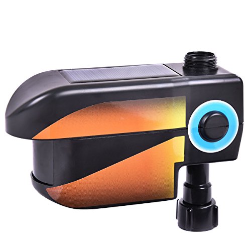 -. Brand : Tangkula -. EAN : 6940350808168 -. Feature : Protects gardens, landscaped areas and yards from deer, rabbits, birds and other animal intruders / Employ the high technology motion-activated / Detects and sprays both day and night up to 30 feet away (1000 sq. ft area) / Solar energy battery included, save money and safe / Overall dimension: 7.4"x3.1"x25.2"(LXWXH) -. Label : Tangkula -. Manufacturer : Tangkula -. ProductGroup : Lawn & Patio -. ProductTypeName : OUTDOOR_LIVING -. Publisher : Tangkula -. Studio : Tangkula -. Title : Tangkula Solar Powered Motion Activated Animal Repellent SP.R.Inkler Black