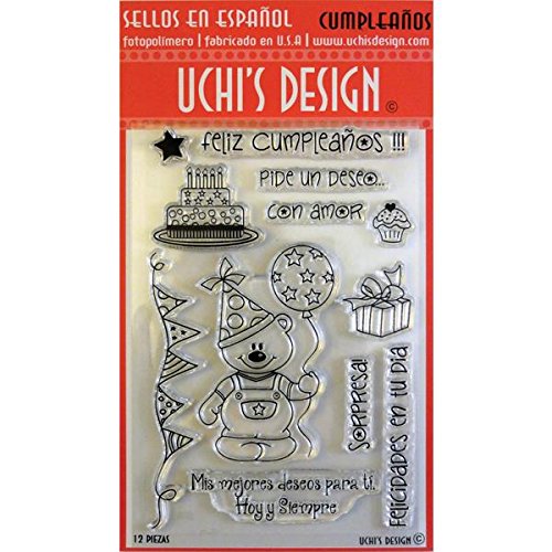 -. Title : UCHIS DESIGN Spanish Stamp Set Sheet, 4 by 6-Inch, Cumpleanos 'Birthday', Clear