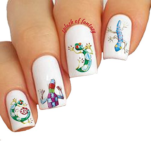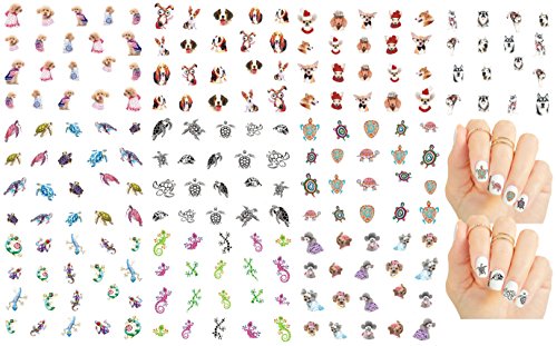 DOGS & GECKOS & TURTLES NAIL TATTOOS - 10 sheets with fun designs in variety of colors and sizes. About 200 tattoos. Dog Breeds: Poodle, Chihuahua, Husky, St. Bernard, Corgi, Basset Hound, etc.