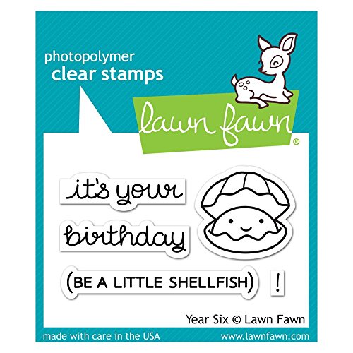-. Feature : February 2016 Release / You're allowed to be a little shellfish on your birthday. This cute set of clear stamps was created to celebrate Lawn Fawn's sixth birthday. / Coordinates perfectly with Year Six Die Set / Made with care in the USA!