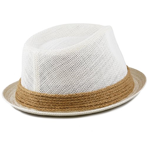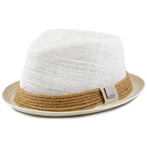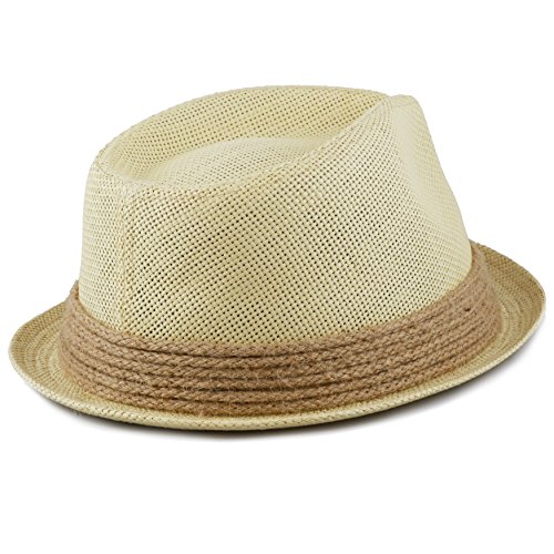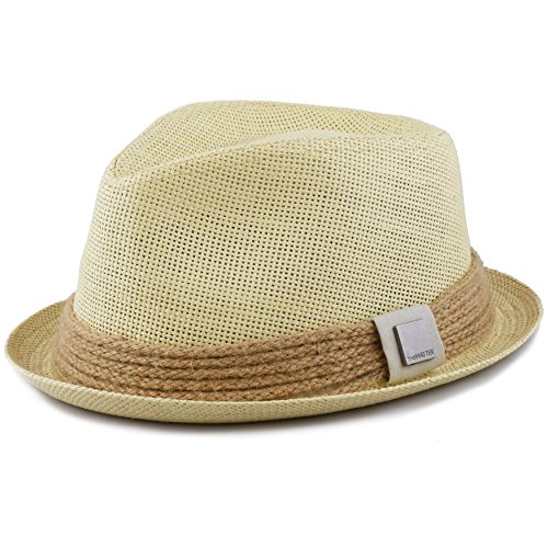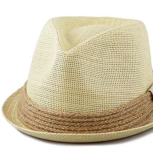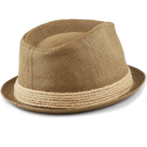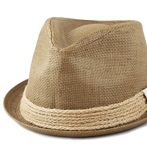 THE HAT DEPOT Womens Short Brim Sun Straw Fedora Hat with Raffia Band