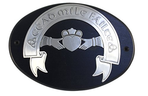 Irish Welcome Sign Claddagh Cead Mile Failte Pewter and Wood