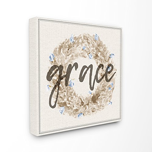 Stupell Industries Grace Floral Wreath Stretched Canvas Wall Art, 24 x 1.5 x 24, Proudly Made in USA