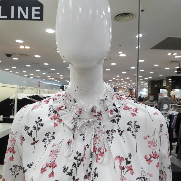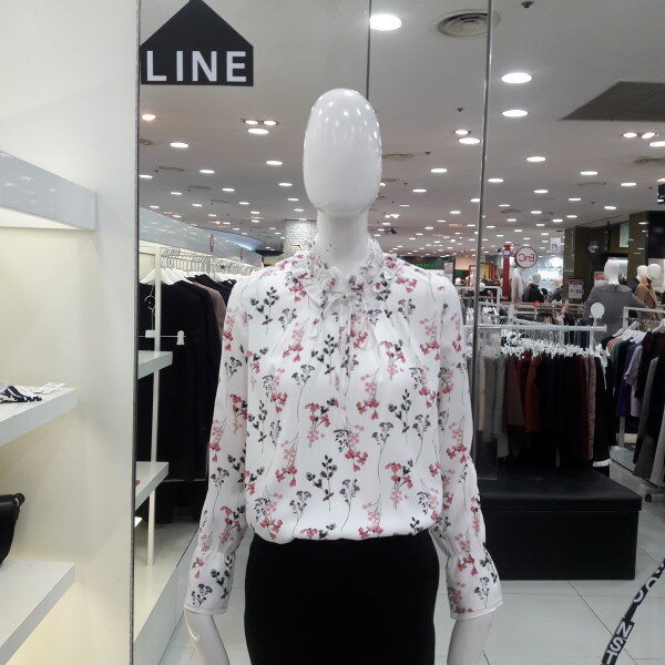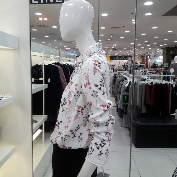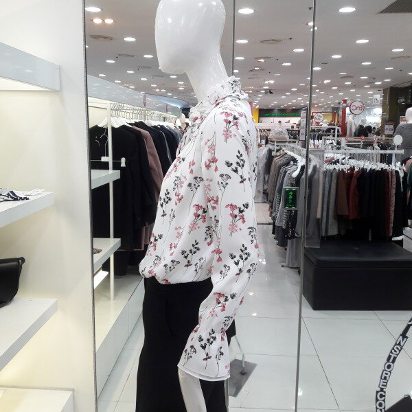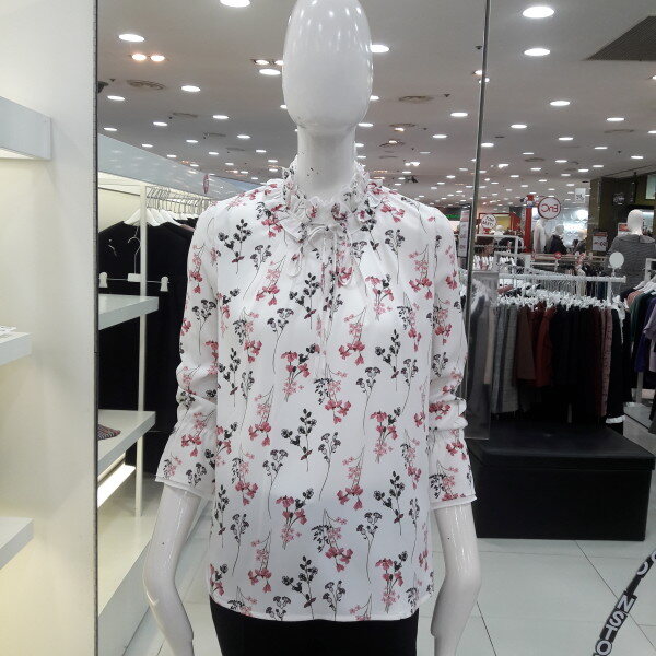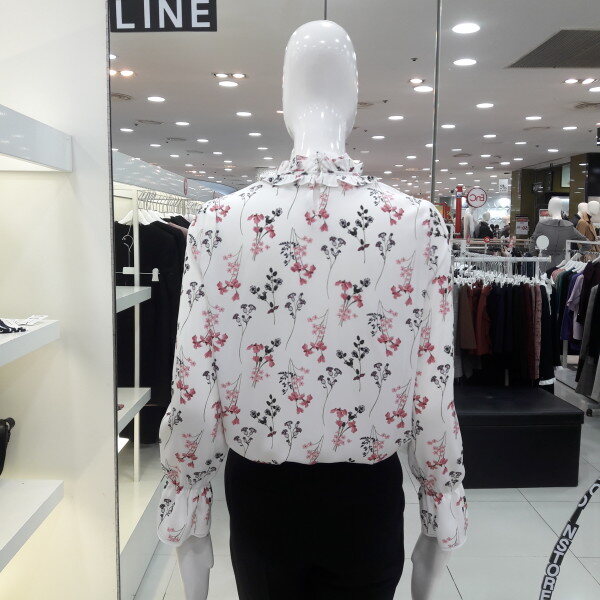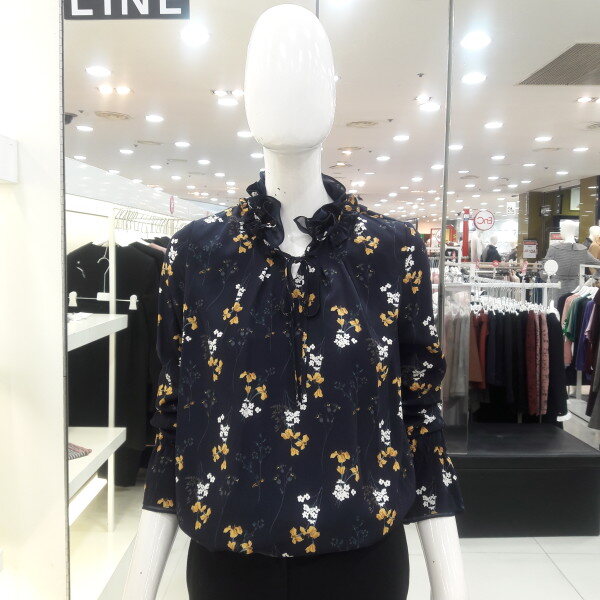 18년 신상 화사한 플라워 블라우스입니다 넥라인 러플이 여성스럽고 러블리한 디자인이며 슬랙스 스커트에 사랑스럽게 연출해보세요