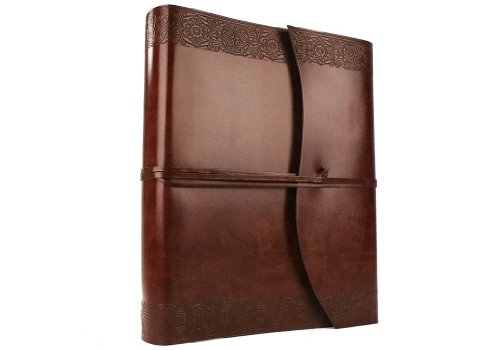 Maya Large Etched Handmade Recycled Leather Wrap Photo Album, Classic Style Pages (30cm x 24cm x 6cm)