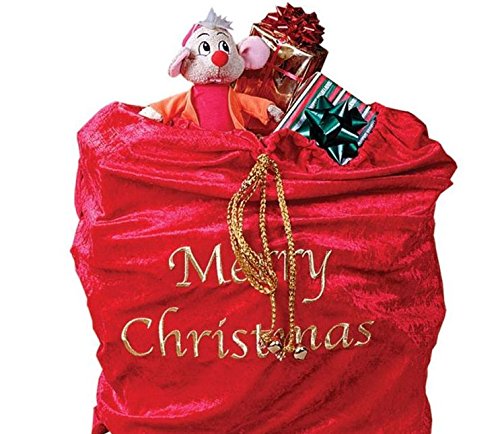 -. Binding : Toy -. Brand : None -. Department : Women -. EAN : 0000007872747 -. Feature : Santa's Velvet Sack . Very nice quality . / Measures 30" X 36" / Gold Embroidered Lettering ' MERRY CHRISTMAS / Shoulder strap / W/ Gold Braided drawstring W/ real sleigh bells! -. Label : Fun World -. Manufacturer : Fun World -. ProductGroup : Toy -. ProductTypeName : TOYS_AND_GAMES -. Publisher : Fun World -. Studio : Fun World -. Title : Santa Sack Costume Accessory -. UPC : 000007872747