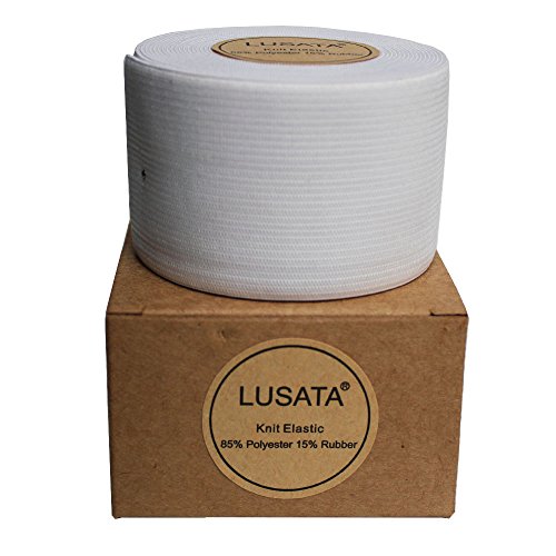 lusata 2-inch Wide White Knit Elastic Spool Heavy Stretch High Elasticity Knit Elastic Band 5 Yard