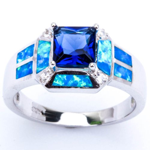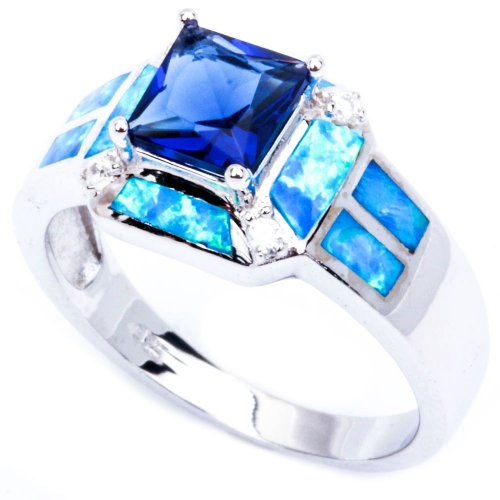 -. Title : Blue Simulated Sapphire, Lab Created Blue Opal, & Cz .925 Sterling Silver Ring Sizes 5-10 Sro16880-bs-bo