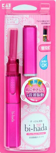 Vibrating at a rate of 100 vibrations per second, the bi-hade ompa is an electric shaver for women utilizing sound waves to reduce friction while shaving. The blade moves in a circular motion while vibrating and effectively cuts unwanted hair while making little direct contact with skin. As the unit is water resistant, it may be rinsed lightly to keep clean. As a safety measure, there are 2 caps for the blade. One blade for use on face is also included. Notes: damage to product may occur should the holder / blade be dropped or incur a strong impact. Please replace blade should damage occur. Please do not submerge in water (product is water resistant not waterproof). Product is intended to shave unwanted hair. Do not use for any other purpose. Discontinue use should any adverse reactions occur due to use. Do not wipe cutting edge as this may cause injury. Apply lotion, cream or soap lather when using shaver. Be careful to not let hands slip while grasping razor. Rinse well, shake off excess moisture and store in dry area after each use. Do not put in water temperatures over 150 degrees. Unused blades should be stored in a dry place. Keep out of reach of children. Product is a blade and should be handled with care.