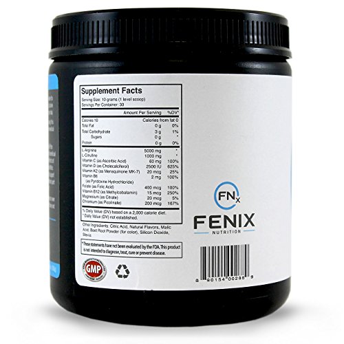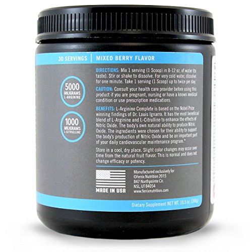 -. Binding : Health and Beauty -. Brand : Fenix Nutrition -. EAN : 0628586309180 -. Feature : L-Arginine Complete includes clinically researched amounts of of L-Arginine (5000mg) and L-Citrulline (1000mg), this powerful combination is what brings the amazing benefits to the body! / SECRET TO SUCCESS! The secret of L-Arginine Complete lies in its ability to create nitric oxide in the body for 20+ hours per day with just one serving of the product! / We have plenty of L-Arginine competition in the marketplace, but most products are not providing the correct amounts of this amino acid to really have much effect - Most competing products yield 500 - 1000 mg on a daily basis / The majority of our competitors offer almost ZERO amounts of L-Citrulline - L-Citrulline is the catalyst that prolongs the production of nitric oxide in the body to over 20 hours a day - Without it the L-Arginine would only produce this effect for approximately 1-2 hours / STUDIED IN DEPTH! Doctors and scientists have determined Nitric Oxide to be one of the most important molecules in the body! L-Arginine Complete provides your body with the ability to product nitric oxide itself. -. Label : Fenix Nutrition -. Manufacturer : Fenix Nutrition -. Model : LAC-006 -. MPN : LAC-006 -. NumberOfItems : 6 -. PackageQuantity : 1 -. PartNumber : LAC-006 -. ProductGroup : Health and Beauty -. ProductTypeName : HEALTH_PERSONAL_CARE -. Publisher : Fenix Nutrition -. Studio : Fenix Nutrition -. Title : Fenix Nutrition - FNX L-Arginine Complete - Cardio Health Formula - Contains L-Citrulline - Enhance Effects Of Nitric Oxide - Secret Weapon For Libido - Mixed Berry - 6 Jars -. UPC : 628586309180