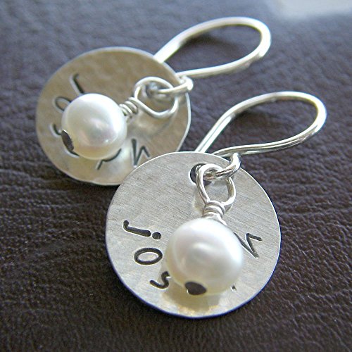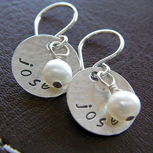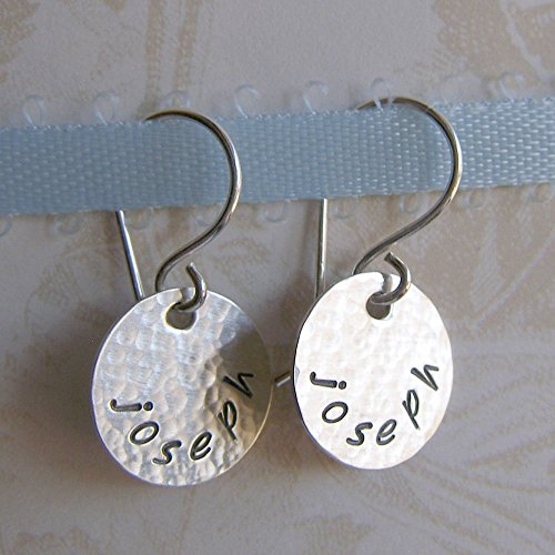 -. Title : 0.5" Round Textured Dangle Earrings Custom Hand Stamped Sterling Silver Personalized Jewelry