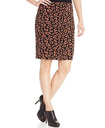 Charter Club Black Women's Leopard Stretch Knit Skirt Brown XL