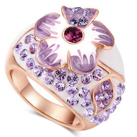 ungu bunga 18 K naik berlapis emas perhiasan cincin purple flowers 18 K rose gold plated jewelry rings FAS SJA3247238479 zy qty000