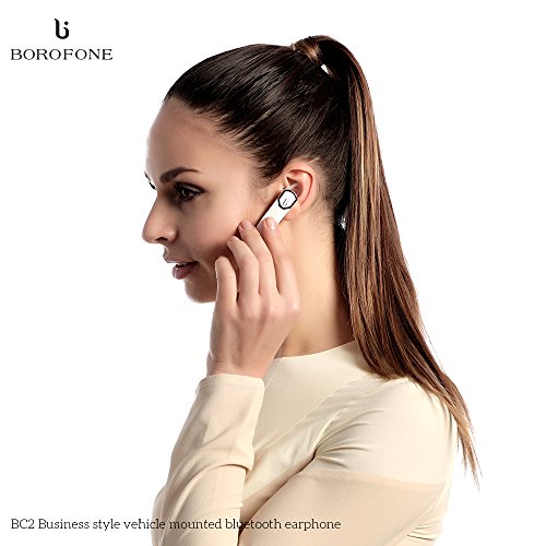 Wireless Bluetooth Headset, BOROFONE V4.1 Ultralight Bluetooth Earphone With Charging Dock for Car Truck, Noise Cancellation, Handsfree with Microphone and Slave Earpiece for Apple iPhone/HTC (White)