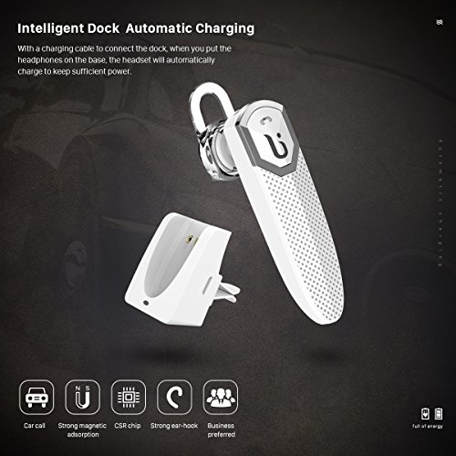 SMART DESIGN: The wireless handsfree headset is both for driving and business (office) use. When you put the headset close to the charging dock, it's going to be automatically positioned based on the magnet on both the headset and the charging stock. Compatible with Apple iPhone 7, 7 Plus, Nokia Lumia Series, Motorola Moto E and more.