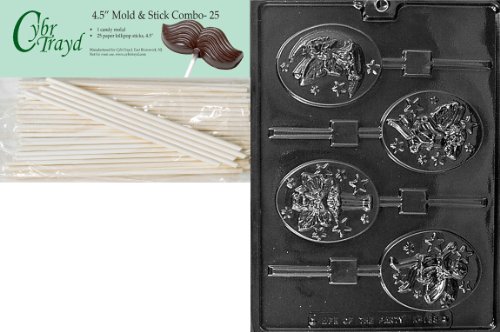 Cybrtrayd 45St25-K138 Fairy Lolly Kids Chocolate Candy Mold with 25 Cybrtrayd 4.5-Inch Lollipop Sticks