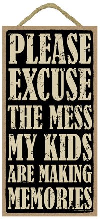 (SJT94112) Please Excuse The Mess My Kids are Making Memories 5" x 10" wood sign plaque