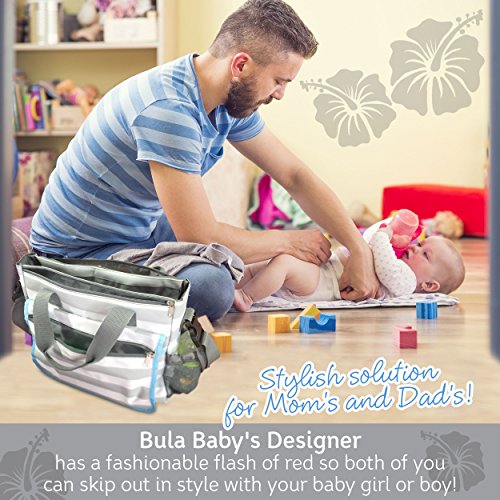 -. Feature : TAKE EVERYTHING ON THE GO - The best size with 12 big & small insert pockets to suit you and your baby's needs. From diapers, snacks, drink bottles, toys, valuables to tablets and phones. Consider the Diaper Bag, 2 Bottle Insultated Bag VALUE PACK option. / EASY TO CARRY- Swing the Bula Bay Diaper Bag Organizer over your shoulder with the adjustable strap or grab the handles when its time to make a move. / KEEP YOUR BELONGINGS SAFE AND SECURE - Internal zips and pockets provide plenty of options for keeping your purse and other valuables out of sight. / QUICK & EASY TO ATTACH TO STROLLER - Quickly hang or clip your Bula Baby Bag for quick access to important items on the go. / STYLISH SOLUTION FOR MOM'S AND DAD'S - Bula Baby's Designer Graphite Chevron has a fashionable flash of red so both of you can skip out in style with your baby girl or boy. Get your stylish Bula Baby Diaper bag and add to cart now.