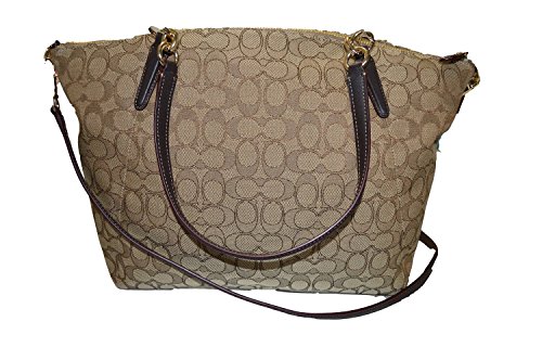 -. Brand : -. Color : brown -. Department : womens -. EAN : 0889532073191 -. Feature : Signature C P.R.Inted jacquard fabric / Zip-top closure, fabric lining / Inside features 1 zip and 2 multifunction pockets / Dual handles with approx. 7" drop; Detachable strap with approx. 19" drop for shoulder or crossbody wear / Approx. 16" top - 14" bottom (L) x 11" (H) x 3 1/2" (W) -. ProductGroup : Shoes -. ProductTypeName : HANDBAG -. Title : Outline Signature Kelsey Satchel Shoulder Bag Handbag in Khaki Brown -. UPC : 889532073191