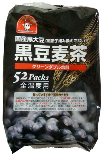 本品は精選した大麦と国産黒大豆(遺伝子組み換えでない)を使用し最新式のスーパークリーンロースターでふっくらと芯まで完全に煎りあげた風味豊かな黒豆麦茶です。砂煎式では砂の混入が心配され、熱風焙煎では煙りくさく、味、香りに難点がありました。スーパークりーンロースターでは前記の様な短所をクリアし原料の粒形に関係なく均一な焙煎ができる様に回転ドラムと完全なコンピューター制御の熱風をダブル利用するため、また黒豆茶をブレンドすることにより風味豊かなさっぱりとしたのどごしの安心してお召し上がりいただける高品質の黒豆麦茶です。