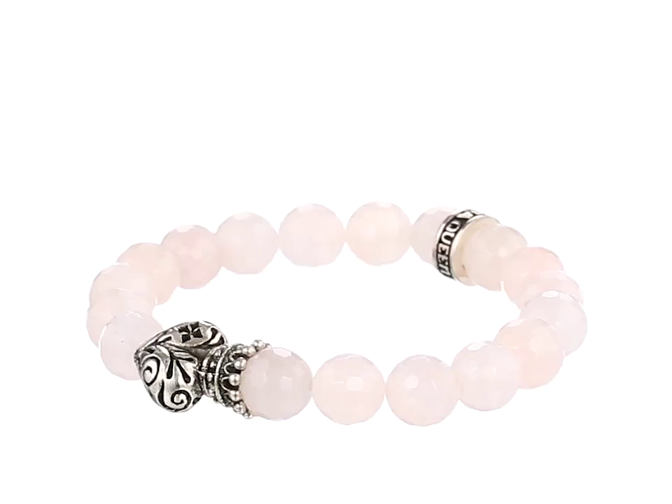 King Baby 10mm Rose Quarz Bead Bracelet with Day of the Dead Crowned Heart
