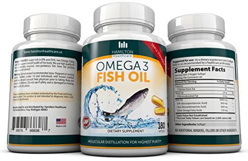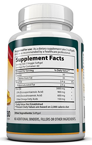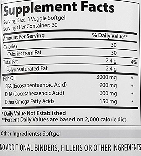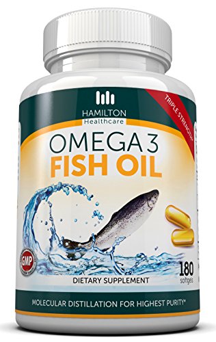 TRIPLE STRENGTH OMEGA 3 FISH OIL, 180 Softgels - 800mg EPA 600mg DHA Per Serving - Molecular Distillation for Highest Purity - Manufactured...