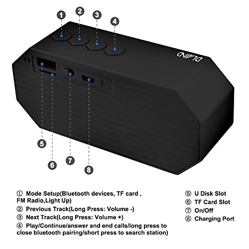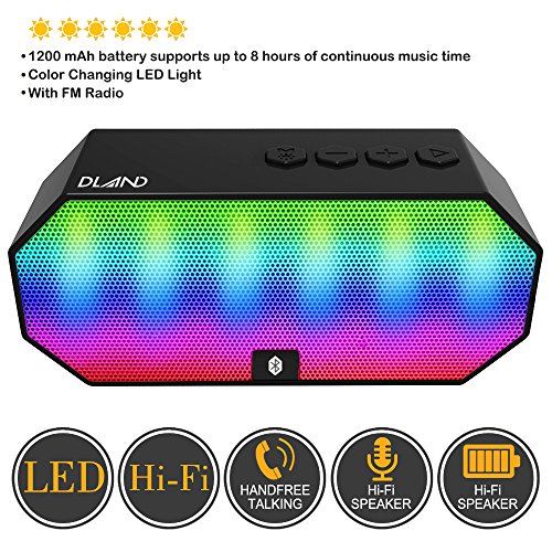 -. Title : Bluetooth Speakers with FM radio,DLAND Portable Color Changing LED Light Wireless HI--FI Surround Stereo Sound Speaker Speakerphone for Home and Outdoor Party / Beach / Picnic