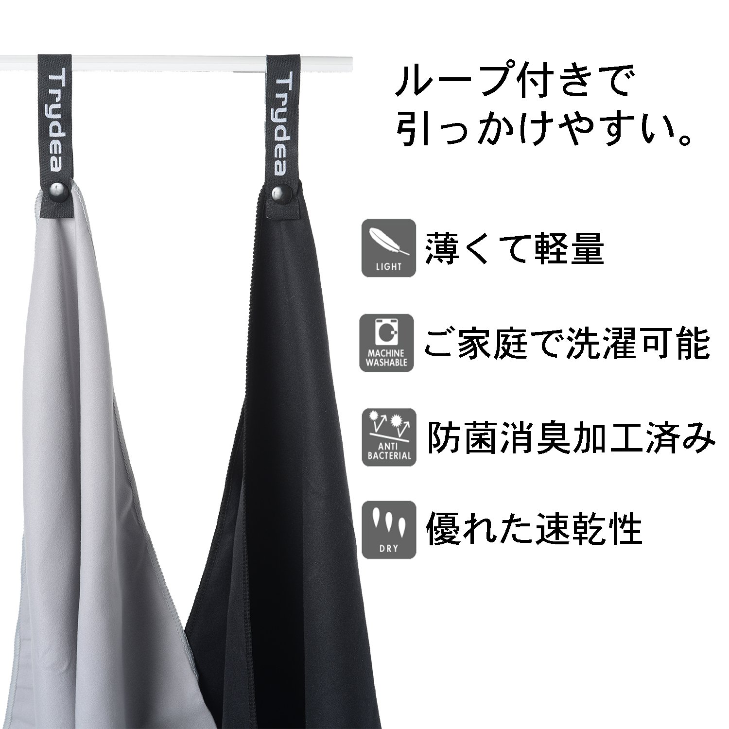 Antibacterial and deodorized finished, it is difficult to dry on the day and night, when you dry the room prevents the occurrence of odor and suppresses breeding of bacteria after using the towel.