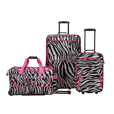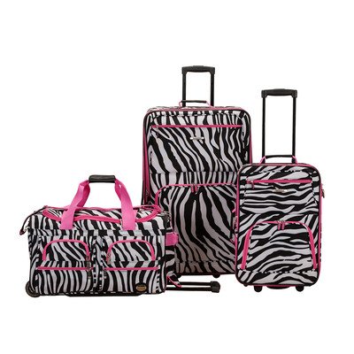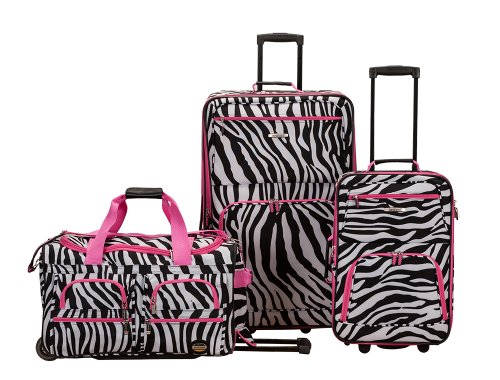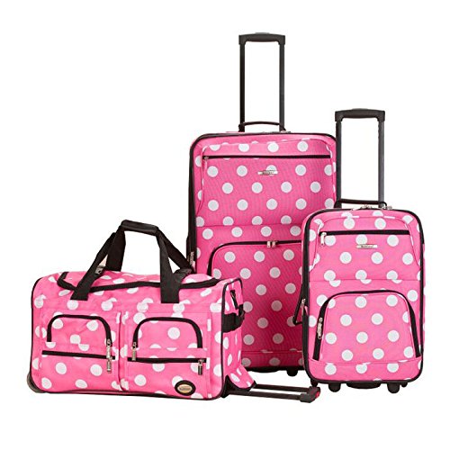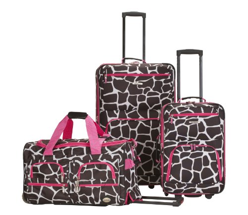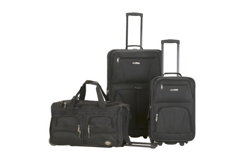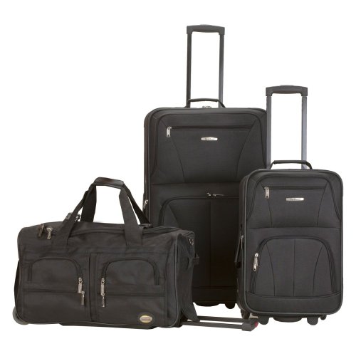 Studio : Rockland Publisher : Rockland Binding : Misc. Product Description This beautiful deluxe 3-piece expandable luggage set?is manufactured with a patented heavy duty eva-molded hi-count fabric. This set is perfect for the serious and experienced traveler. Manufactured with the very best heavy duty polyester and pvc backing, this luggage set is designed for the traveler on the go and comes with two expandable uprights and a 22 inch rolling duffle bag. It comes packed with features including: an inside retractable handle, ez-roll in-line skate wheels, back zippered secured pockets, top and side comfort grip handle, stability bars at the bottom to avoid tilting, and locks and keys. Upright features include: clear in-line skate wheel system for smooth ride, push-button self-locking internally stored retractable handle system, ergonomic and comfortable padded top and side grip handles, two front full size zipper-secured pockets, three internal organizational pockets for all your traveling needs, each upright's interior is fully lined with a durable and elegantly imprinted lining. 19-inch carry-on upright: 19 inches high x 13 inches wide x 8 inches expandable to 10 inches deep. 6 pounds and the 28-inch upright: 28 inches high x 18 inches wide x 12 inches expandable to 14 inches deep and weighs 9 pounds. The matching duffel has many uses: take it to the gym, tennis court, or on a short trip; there's room for everything. Measures approximately 26 inches long x 14 inches wide x 17 inches high and 5 inches high and weighs 4.45 pounds. Fully-zippered bottom compartment for sports equipment (such as tennis rackets) or a complete change of clothes. 0
