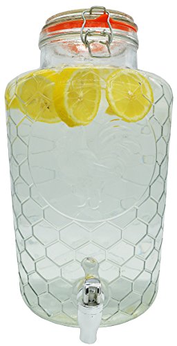 From sweet tea and freshly-squeezed lemonade to fruit punch and ice water, this 2 gallon clear glass beverage dispenser makes serving eye-catching refreshments effortless! This elegant dispenser is made of crystal glass, great for showcasing your most colorful or fruit filled beverages. This tried-and-true classic look is incredibly versatile, making it ideal for both casual and formal occasions. It is the perfect self-serve tabletop addition to you catering service, restaurant, breakfast bar, and so much more! The stylish glass dispenser is capable of holding 2 gallon of your favorite refreshments, simultaneously enhancing your decor and conserving table space. The Bail Trigger-style top is simple to remove, making this beverage dispenser easy to fill and refill. The metal latch on the lid also gives the beverage dispenser a nice seal when in use, keeping your drinks fresh while helping to prevent spills during transport. The sleek silver spout on this non-insulated dispenser allows for easy dispensing so your guests or patrons can conveniently serve themselves. Use this beautiful piece as part of your rustic wedding reception decor, or use it to enhance the buffet tabletops at your establishment - no matter what the venue, this clear glass beverage dispenser will serve your refreshments in style! To ensure long term usability, this dispenser should be hand washed and is not recommended for use in conventional or microwave ovens. 0 |