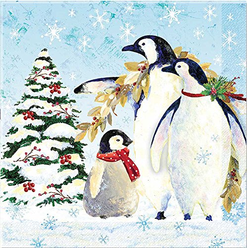 Punch Studio Christmas Kitchen Party Luncheon Paper Napkins - Snowy Penguins