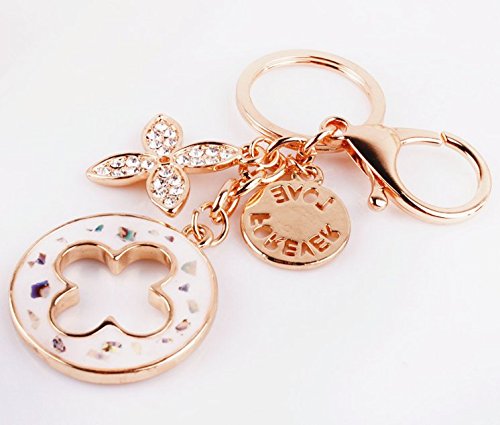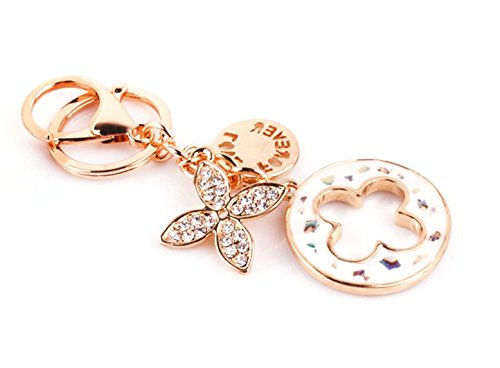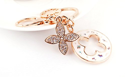 Nument(TM) Charms Four Leaf Clover Keychain Rose Gold Plated Swarovski Crystal Elements Women Car Keychain Handbag Decoration Gift Box Packed