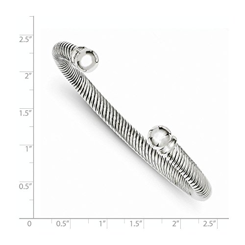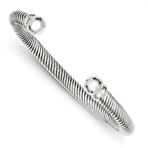 -. Title : Sterling Silver Rhodium Plated Twist-Cuff Decorative End Cap Bangle Bracelet 14grams