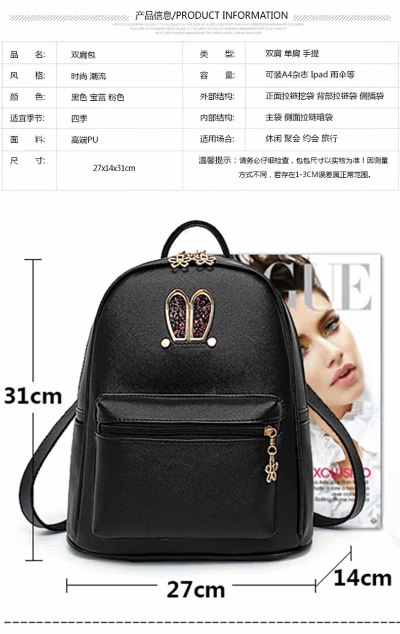 包包2017新款夏双肩包女卡通学生书包背包甜美可爱学院风旅游女包