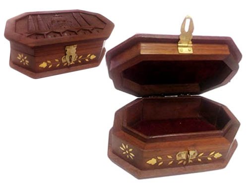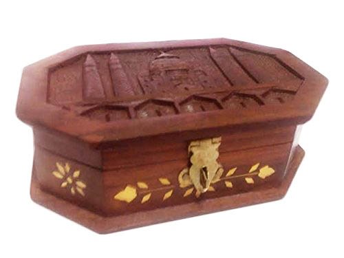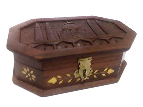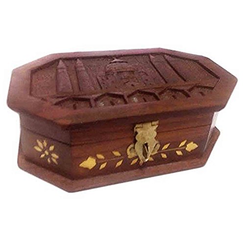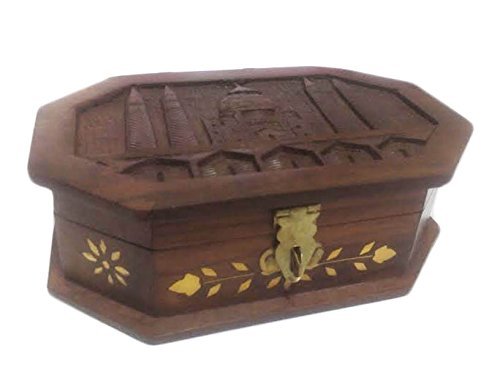 - Exquisite box is made using one of the richly hued timber Indian Rosewood and further adorned with hand carvings of the wonder Taj Mahal motif.