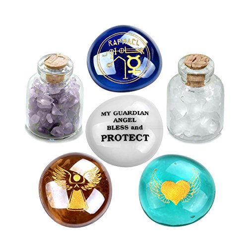 Archangel Raphael Sigil Guardian Angel Blessings Inspriational Amulet Glass Stone Amethyst Quartz Bottles