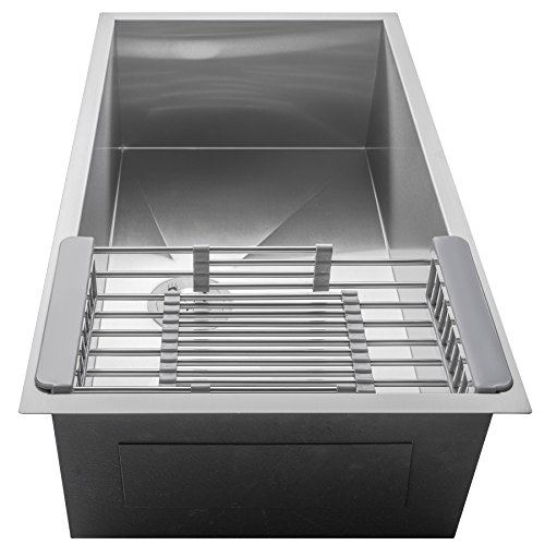 Firebird 30" x 18" x 9" Under Mount Handmade Stainless Steel Single Bowl Kitchen Sink w/ Drain Strainer Kit Adjustable Tray