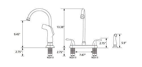 Overall height: 13.4"; Spout height: 9.5"; Side sprayer height: 5.9"