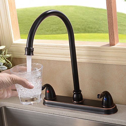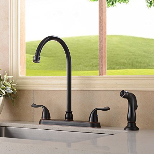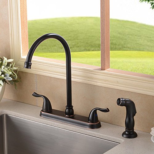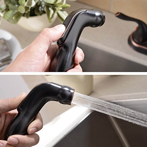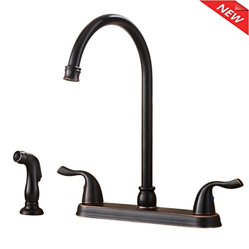 Ufaucet Antique Solid Brass 2 Handle High Arch Two Mode Pull Out Sprayer Oil Rubbed Bronze Kitchen Faucet, Kitchen Sink Faucet With Pull Down Side Sprayer