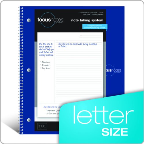 TOPS FocusNotes Note Taking System 1-Subject Notebook, 11 x 9 Inches, White, 100 Sheets (90223)