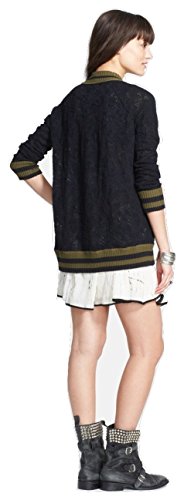 A loosely knit pattern lends gorgeous texture to this front-zip jacket styled with sporty striped trim. 27 1/2" length (size Medium). Front zip closure. 55% linen, 41% cotton, 4% other fibers. Dry clean. By Free People; imported.Feature